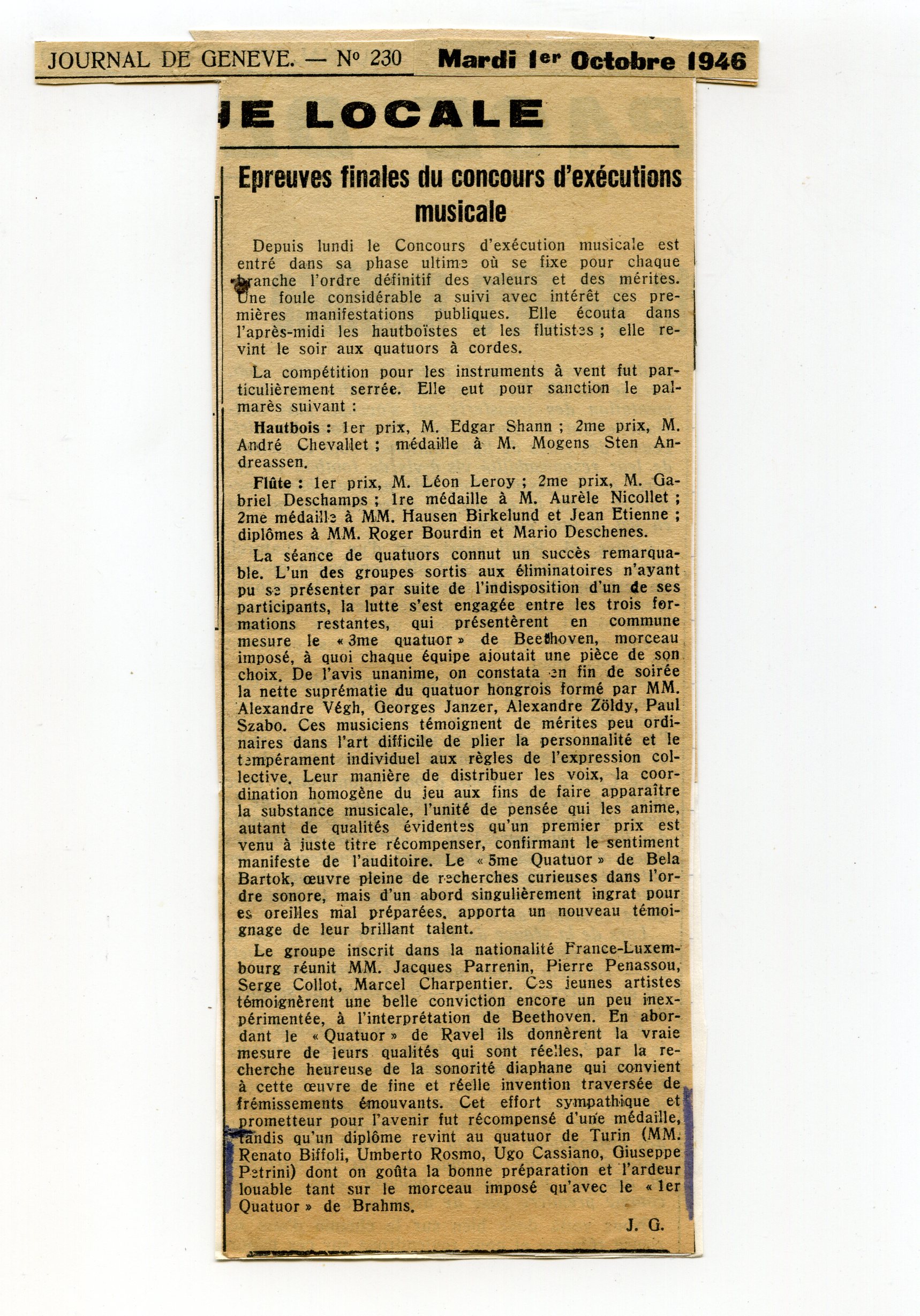 img004 Publicato 12 settembre 2015 alle 1718 × 2458 li BIOGRAFIA PER IMMAGINI ← Precedenti Successivi → 1° Ottobre 1946, sul Giornale di Ginevra sono citati la buona preparazione e “l’ardeur louable” dei giovani Maestri di Torino: Renato Biffoli, Umberto Rosmo, Ugo Cassiano e Giuseppe Petrini.