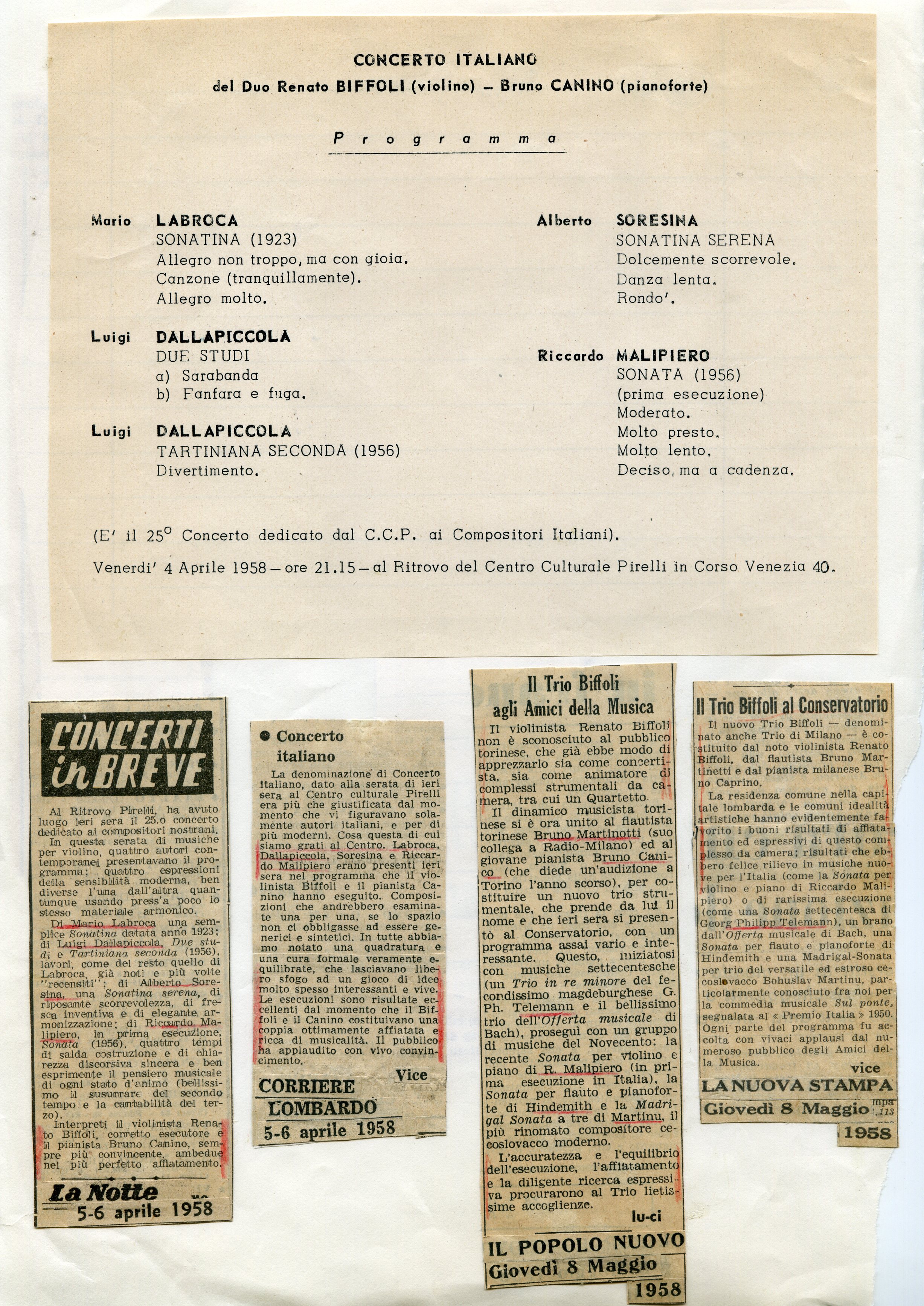 img021 Publicato 12 settembre 2015 alle 2454 × 3469 li BIOGRAFIA PER IMMAGINI ← Precedenti Successivi → Nasce il Duo Biffoli-Canino. “Coppia ottimamente affiatata e ricca di musicalità” (Vice – Il Corriere Lombardo, 6 Aprile 1958). Insieme al flautista Maestro Bruno Martinotti formeranno il Trio Biffoli o Trio di Milano.